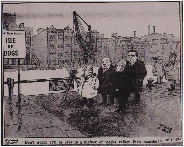 This determined disposition had to be maintained throughout the 20th century, because most of the people living on the Island were well below the breadline. After heavy bombing by the Luftwaffe in WW2, (the docks were especially targeted and you can still find the anti-aircraft guns on Mudchute farm), thousands were crammed into cheap rebuilds with little to no public services on offer, and just the one bus to take you on and off the Island. Thankfully, though, there were always plenty of pubs to choose from. In 1970, because of mass unemployment and social deprivation, the residents had decidedly had enough. Inspired by events in Rhodesia a few years before, the Isle of Dogs published a Unilateral Declaration of Independence (UDI) from the UK and elected local campaigner Ted Johns as its president. They did this by blocking off the two swing bridges that connected either side of the Island to the rest of London, so that no one could get on or off and cargo ships could not enter the docks, and hundreds of Islanders joined in protest. The independent state became so popular that it gathered international media attention, and the Island's president and prime ministers were invited to 10 Downing Street to discuss their grievances. (This is when plans for redevelopment were first devised.) In the end, the Republic of the Isle of Dogs lasted just ten days, and was all a bit of a joke, but it was the Islanders' hilarious way of getting their point across. (Although not everyone was thrilled – local shopkeeper David Jordan denounced it a 'dictatorship'). Its brilliance lay in its shrewd attempt to assemble the rest of the world to a place that had largely been forgotten.